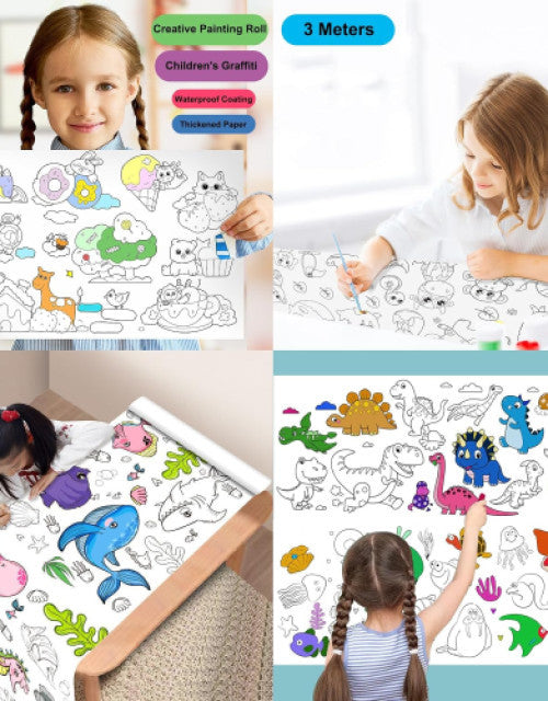 Drawing Paper Roll for Kids, 300 X 30 Cm Large Coloring Poster for Toddlers, Art Paper Crafts Coloring Tablecloth Ideal Gift for Class Home Birthday Party